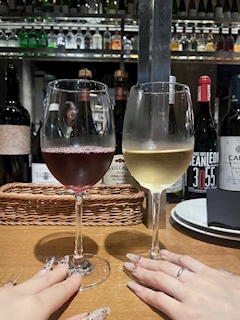 今日も元気に出勤しますっ! マツエク行ったばっかりだからビジュいいかも♡" 今日もおるからね~💕 いきってオシャレなん飲んでるけどノンアルだよ~🍷